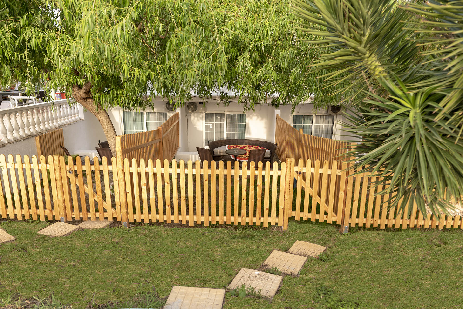 - Die Terrasse bietet einen kleinen privaten Gartenbereich mit bequemen Sitzgelegenheiten