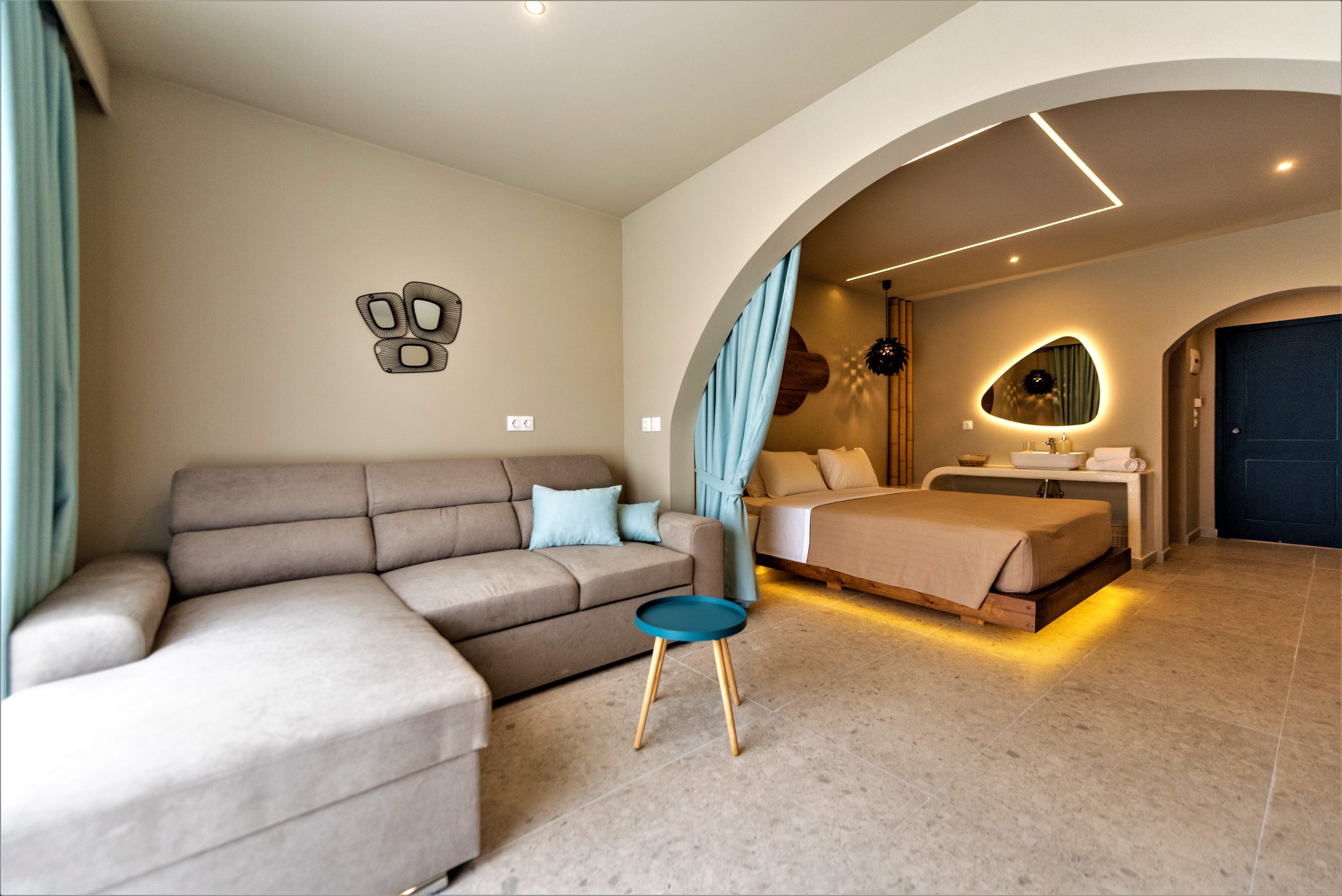 Die Juniorsuiten privater Garten sind ebenfalls seit dem Sommer 2023 in frischem Design renoviert, sind bei gleicher Ausstattung wie die Doppelzimmer Superior Poolseite/privater Garten geräumiger und verfügen über einen kombinierten Wohn-/Schlafraum sowie einen privaten Garten mit Chill out Lounge, Terrasse mit Sitzgelegenheit und liegen in der Nähe des großen Pools (RJG). Wahlweise auch zur Alleinnutzung buchbar (GJ1).